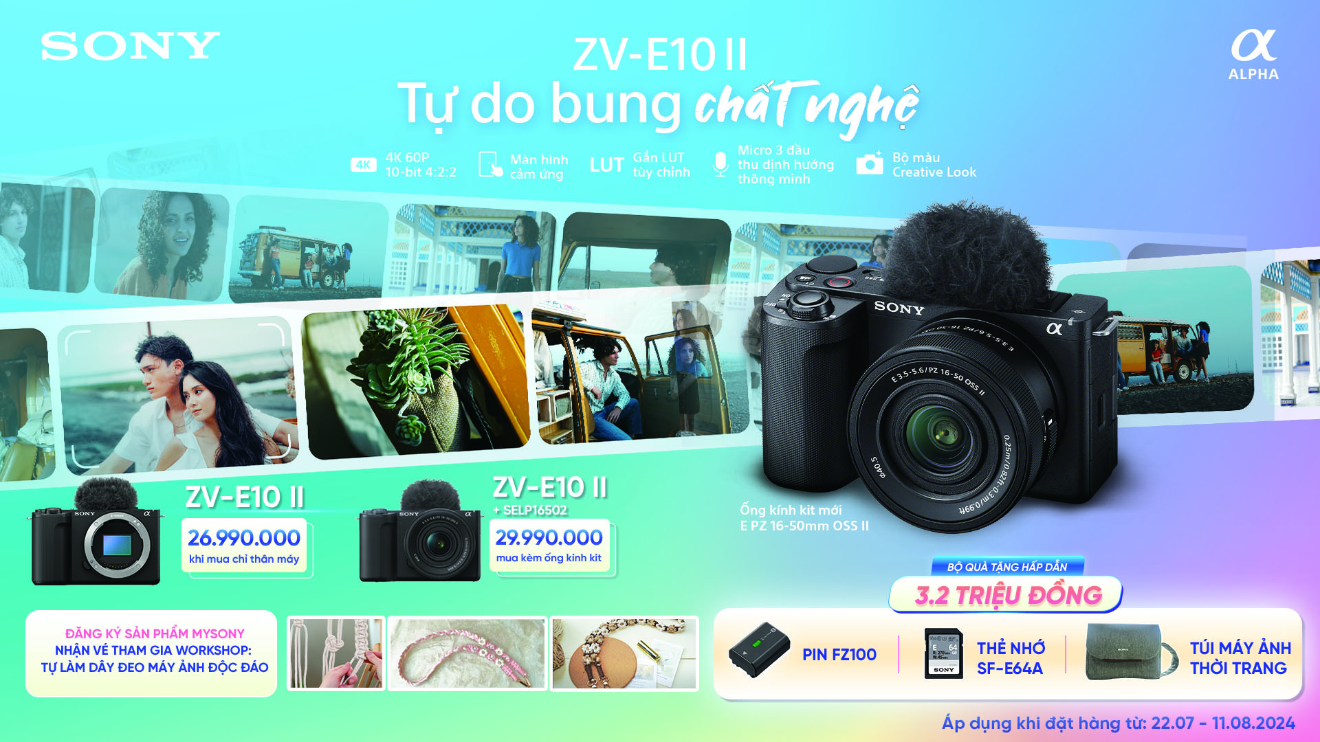 Sony Electronics Việt Nam ra mắt ZV-E10 II, thế hệ thứ hai của dòng máy ảnh vlog ZV-E10. Phiên bản đầu tiên ZV-E10 là dòng máy ảnh APS-C được yêu thích trong dải sản phẩm ZV dành cho nhà sáng tạo nội dung của Sony, được thiết kế với mục...