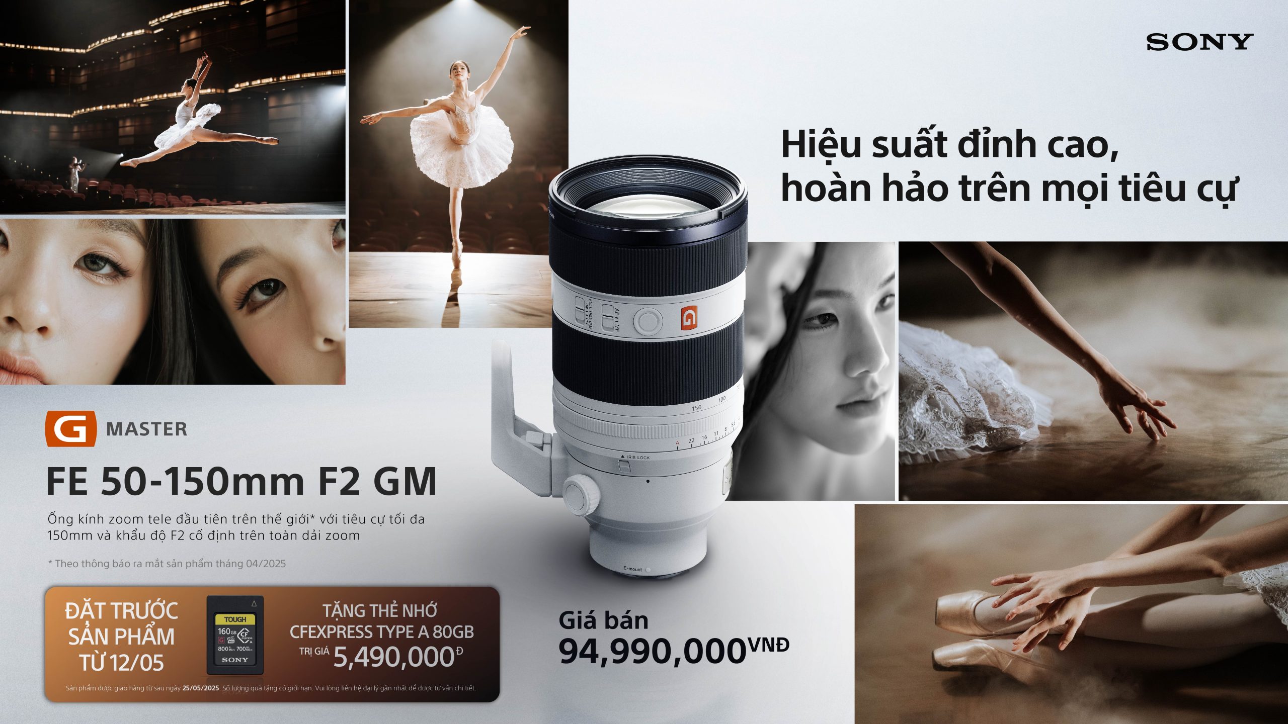 Hồ Chí Minh, ngày 12 tháng 05 năm 2025 – Sony Electronics Việt Nam chính thức giới thiệu FE 50-150mm F2 GM, ống kính zoom tele đầu tiên trên thế giới1 sở hữu tiêu cự tối đa 150mm cùng khẩu độ F2 không đổi. Có tiêu cự bắt đầu từ...