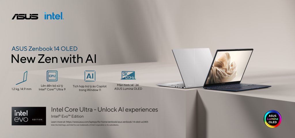 ASUS – Thương hiệu laptop nổi tiếng đến từ Đài Loan dĩ nhiên không đứng ngoài cuộc chơi này khi là hãng đầu tiên giới thiệu những sản phẩm laptop chip AI ngay sau khi Intel công bố về bộ xử lí Intel Core Ultra của họ.
