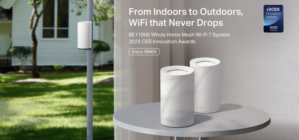 Irvine, Calif. – Ngày 6 tháng 1 năm 2025 – TP-Link Systems Inc, nhà cung cấp giải pháp mạng và nhà thông minh hàng đầu toàn cầu, vừa vui mừng công bố hệ thống Wi-Fi Mesh 7 Ba Băng Tần Deco BM65 BE11000 đã được vinh danh là Sản phẩm Đổi mới Tại CES® 2025. Deco BM65 được lựa chọn bởi một hội đồng chuyên gia hàng đầu trong ngành vì sự sáng tạo, tính năng và thiết kế thẩm mỹ.