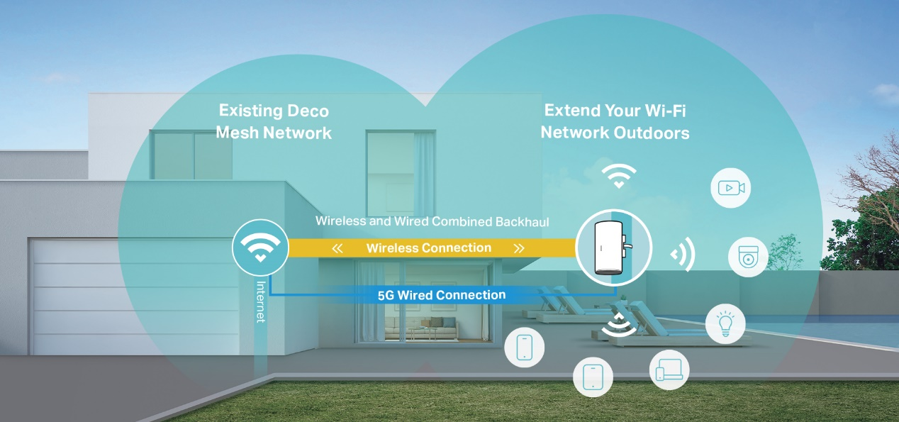 Được thiết kế để đáp ứng nhu cầu ngày càng tăng về kết nối ngoài trời đáng tin cậy, hệ thống Mesh Wi-Fi 7 Deco BM65 bao gồm hai node trong nhà và một node ngoài trời. Mẫu Deco BM65-Outdoor đạt chuẩn IP65**, đảm bảo hiệu suất hoạt động ổn định trong mọi điều kiện thời tiết nhờ vỏ chống nước và chống bụi. Khi kết hợp với các mẫu Deco BM65 trong nhà, sản phẩm tạo ra một mạng Mesh Wi-Fi thống nhất, cung cấp kết nối tốc độ cao ổn định từ trong nhà đến ngoài trời.