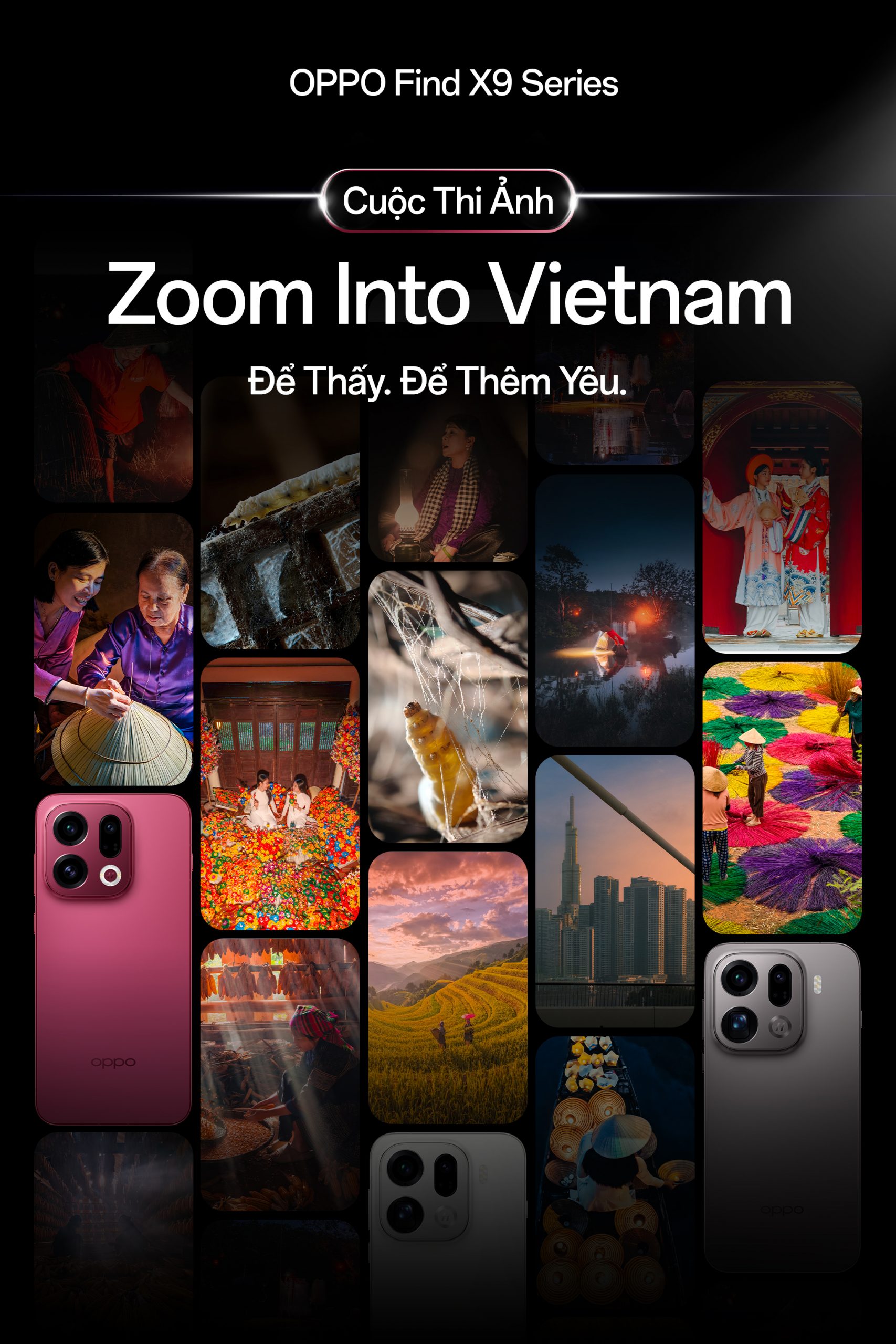 OPPO Việt Nam chính thức phát động cuộc thi ảnh “Zoom Into Vietnam – Để Thấy. Để Thêm Yêu.”, nằm trong chuỗi hoạt động nhiếp ảnh dài hạn tôn vinh vẻ đẹp Việt Nam. Đây là sân chơi sáng tạo dành riêng cho người dùng điện thoại OPPO tại Việt Nam, khuyến khích ghi lại và chia sẻ những góc nhìn rất Việt Nam thông qua hệ thống camera nâng cấp mạnh mẽ của OPPO Find X9 Series, King of Mobile Photography, với nhiều giải thưởng giá trị dành cho các tác phẩm xuất sắc.