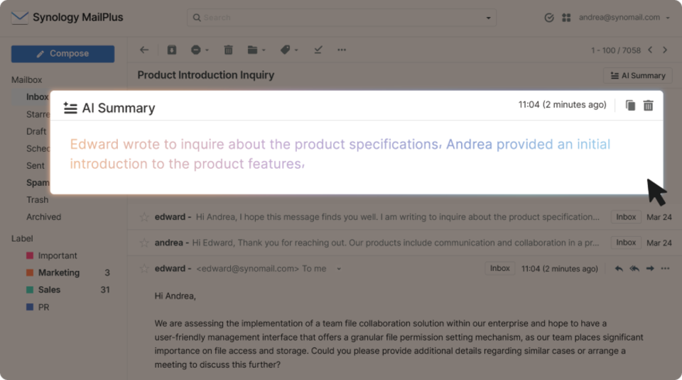 Tăng tốc hiệu suất xử lý email với Synology MailPlus AI