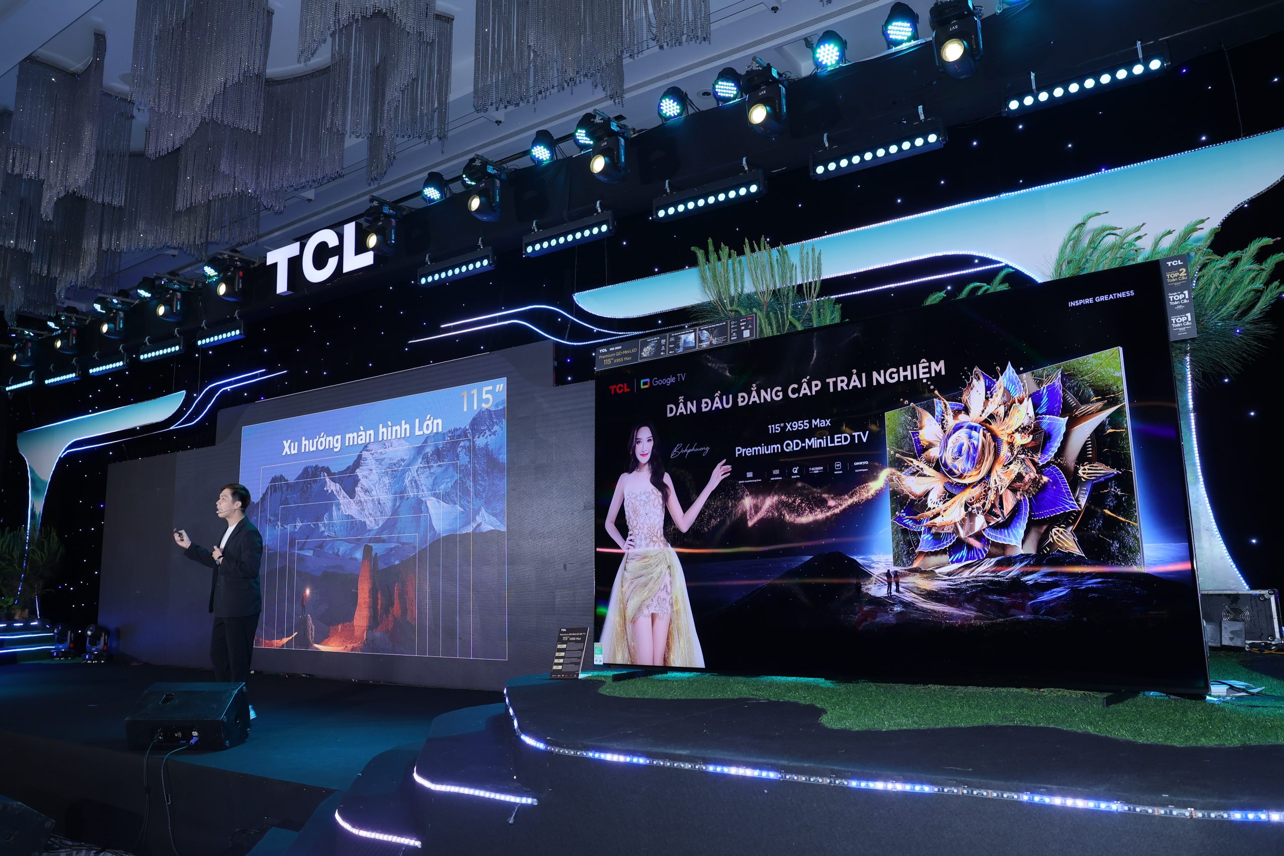 TCL tự hào ra mắt loạt tivi mới với công nghệ hàng đầu. TCL Premium QD-Mini LED 115X955 Max là chiếc tivi QD-Mini LED lớn nhất trên thị trường hiện nay, không chỉ củng cố vị trí dẫn đầu của TCL về tivi màn hình lớn mà còn thiết lập một tiêu chuẩn mới cho trải nghiệm nghe nhìn tại nhà.