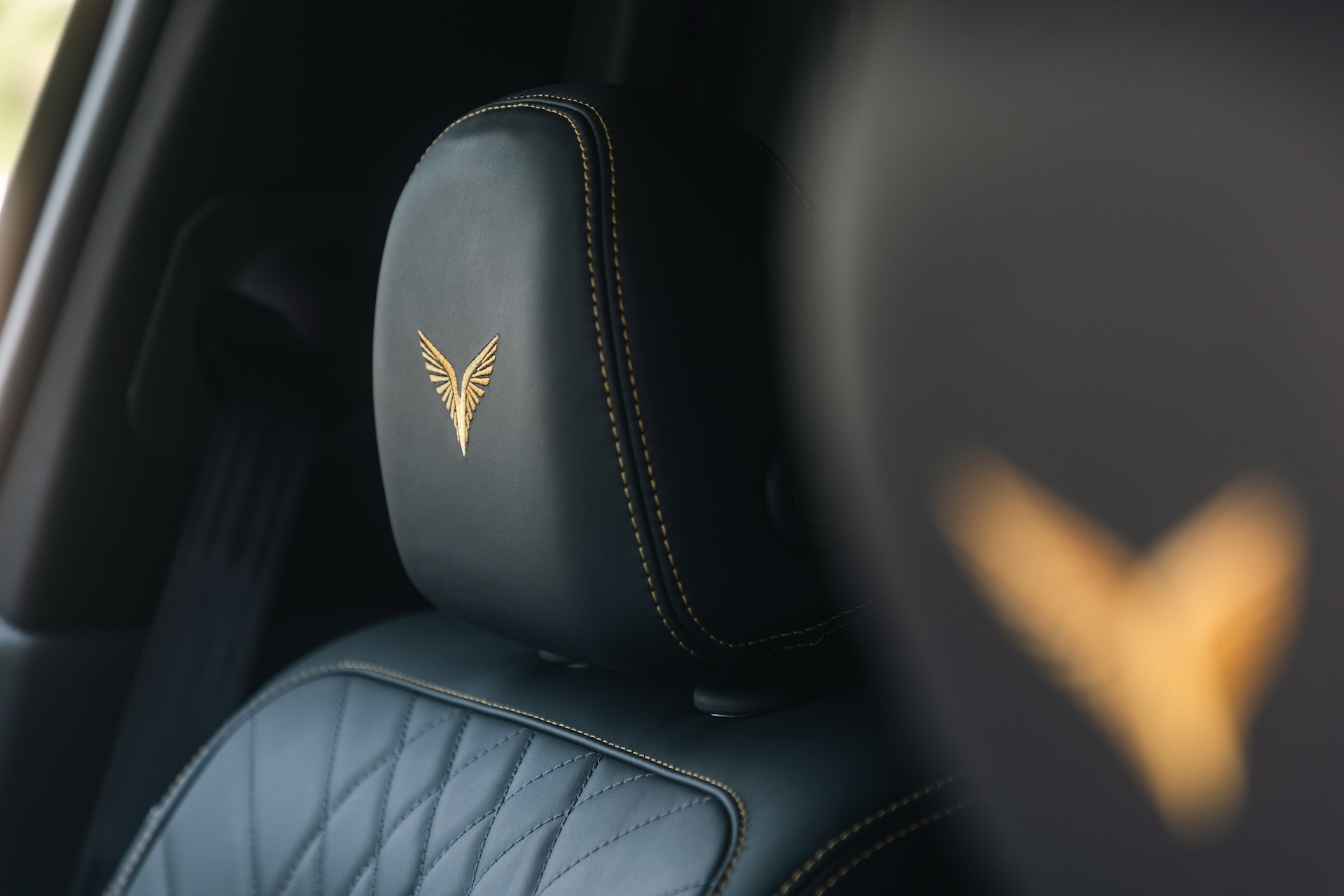 Nội thất được ốp, bọc và mạ bởi các loại vật liệu đặc biệt cao cấp như gỗ quý Golden Nanmu, da Nappa và vàng thật. Toàn bộ chi tiết mạ vàng trong và ngoài xe đều được làm hoàn toàn thủ công, với sự tài khéo, tinh tế và tỉ mỉ đến từng chi tiết.