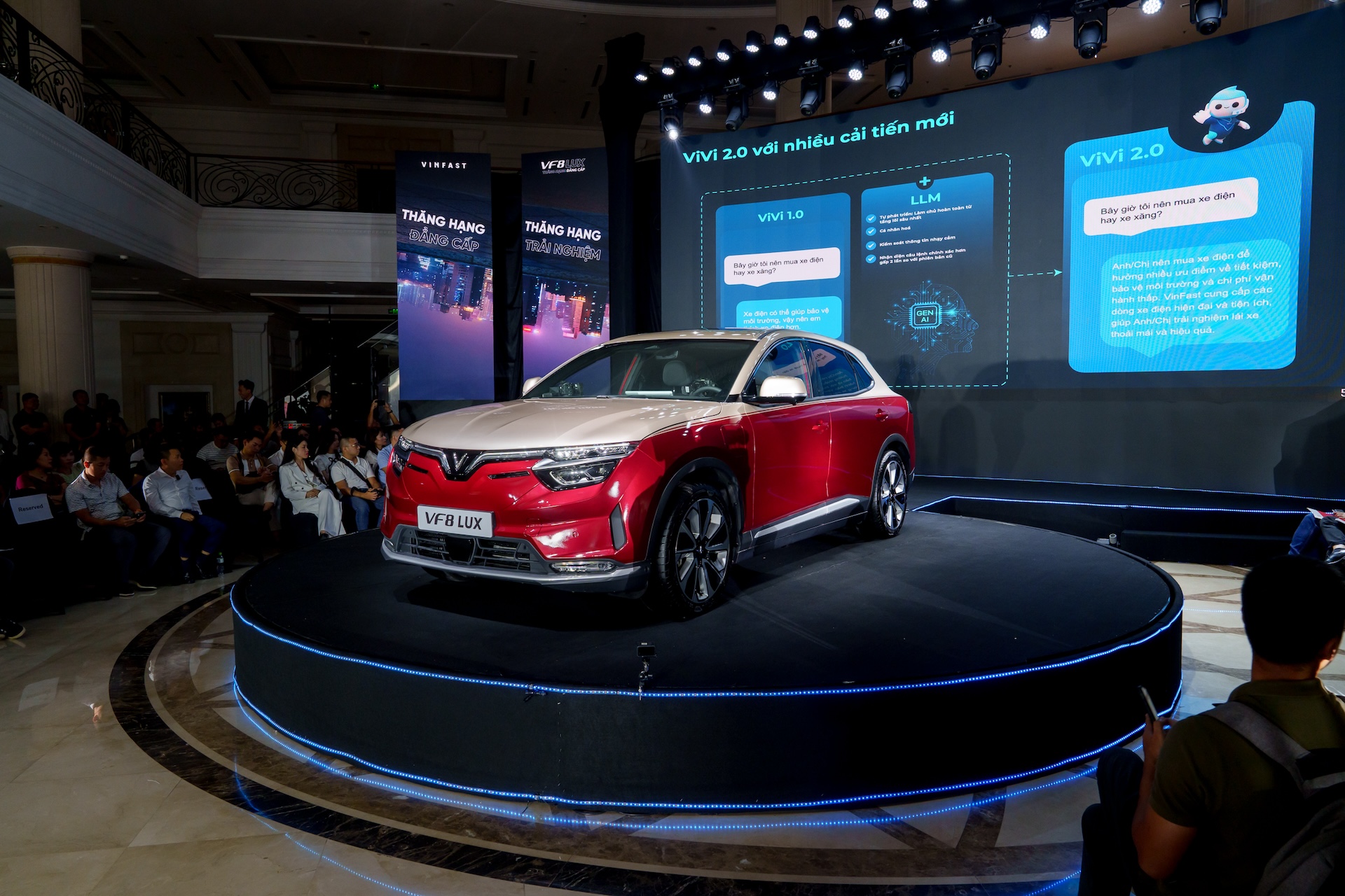 VinFast chính thức ra mắt phiên bản nâng cấp VF 8 Lux của dòng xe điện VF 8 với diện mạo sang trọng, khí chất và công nghệ vượt trội. Với mong muốn hỗ trợ người dùng “Thăng hạng đẳng cấp”, VinFast cũng công bố áp dụng chính sách nâng cấp từ xe VF 8 lên VF 8 Lux với chi phí tối ưu và nhiều ưu đãi hấp dẫn cho các khách hàng đặt cọc sớm.