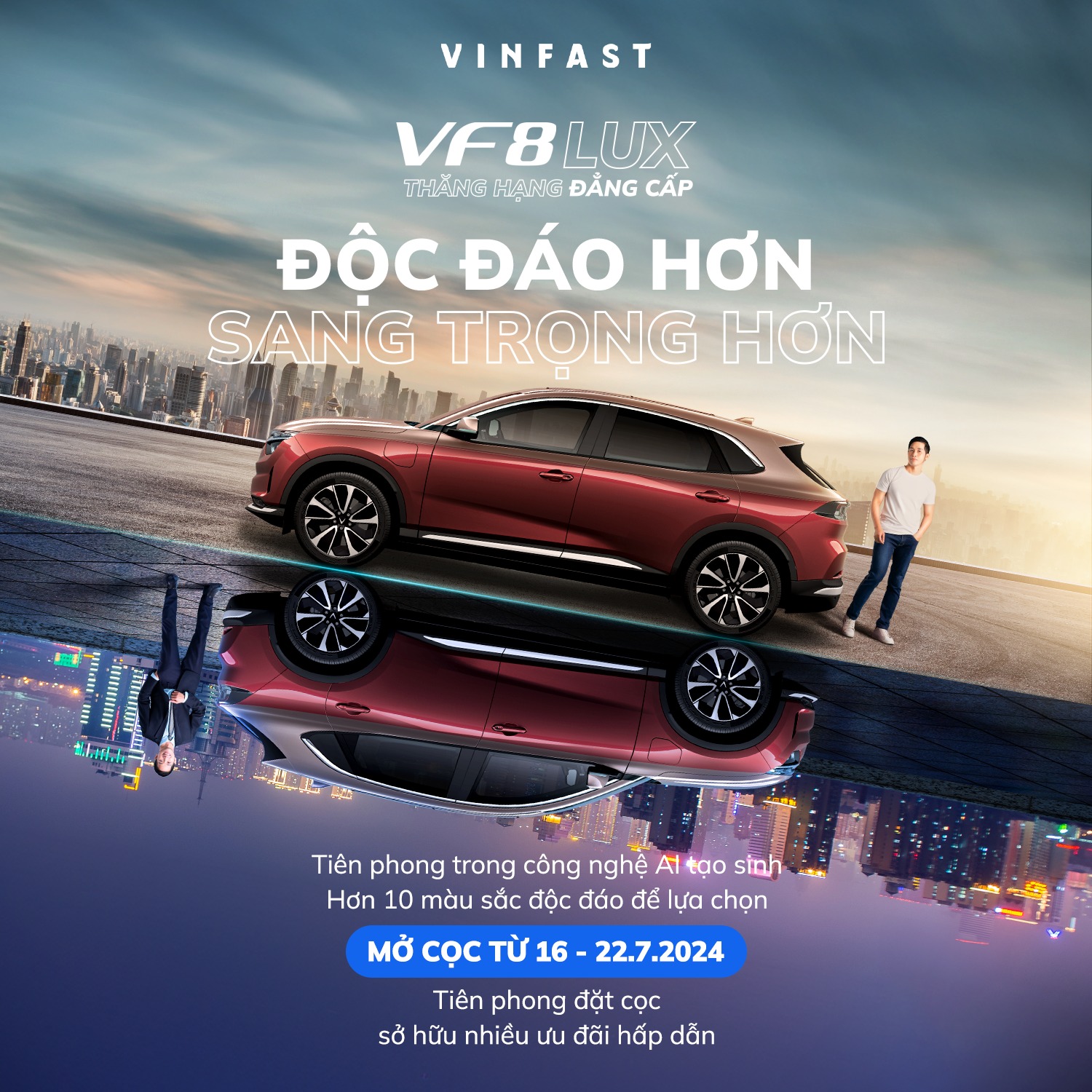 Được định vị là mẫu xe “Thăng hạng đẳng cấp”, hướng đến nhóm khách hàng cá nhân và gia đình, VinFast áp dụng nhiều chính sách bán hàng và ưu đãi đặc biệt dành cho VF 8 Lux. Theo đó, khách hàng đặt cọc VF 8 Lux trong tháng 7 sẽ được miễn phí sạc pin tại các trạm sạc công cộng của V-GREEN trong vòng 2 năm, được cam kết mua lại xe với trị giá có thể lên tới 90% giá xe ban đầu, bên cạnh các ưu đãi chung như miễn phí gửi xe dưới 5 tiếng và ưu tiên chỗ đỗ tại các cơ sở của Vingroup. Tất cả chủ xe VF 8 hiện tại cũng sẽ được hỗ trợ đổi sang VF 8 Lux với mức định giá xe cũ có thể lên tới 93% giá xe.