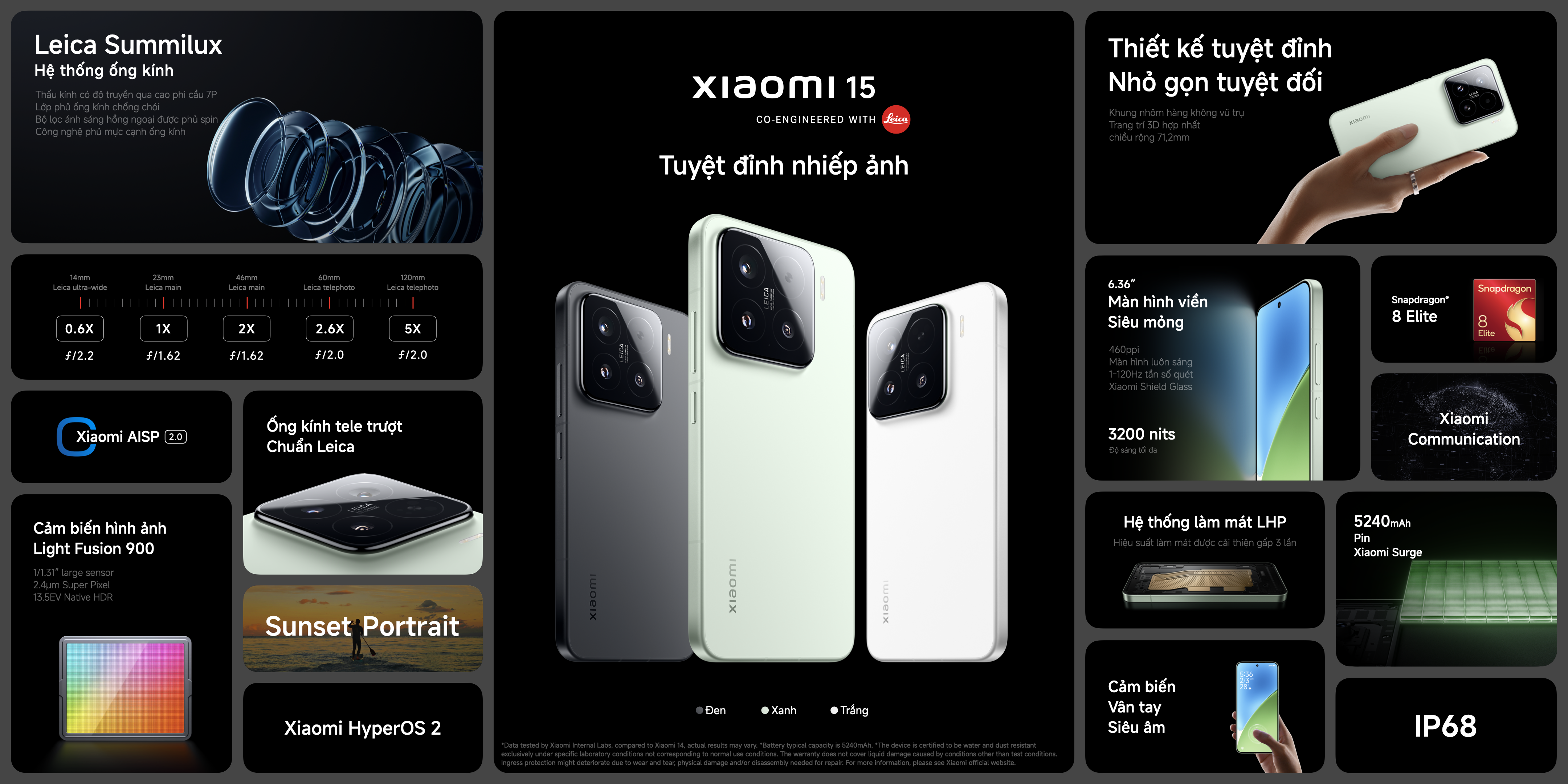 Xiaomi 15 Series chính thức ra mắt người dùng Việt Nam cùng lúc với thị trường toàn cầu, đánh dấu bước tiến đột phá trong hành trình kiến tạo công nghệ. Sự kết hợp giữa hệ thống camera Leica đẳng cấp và Xiaomi HyperOS 2 tích hợp trí tuệ nhân tạo Xiaomi HyperAI tiên tiến không chỉ mang đến khả năng nhiếp ảnh chuyên nghiệp, hiệu suất mạnh mẽ mà còn tái định nghĩa chuẩn mực của một smartphone cao cấp toàn diện.