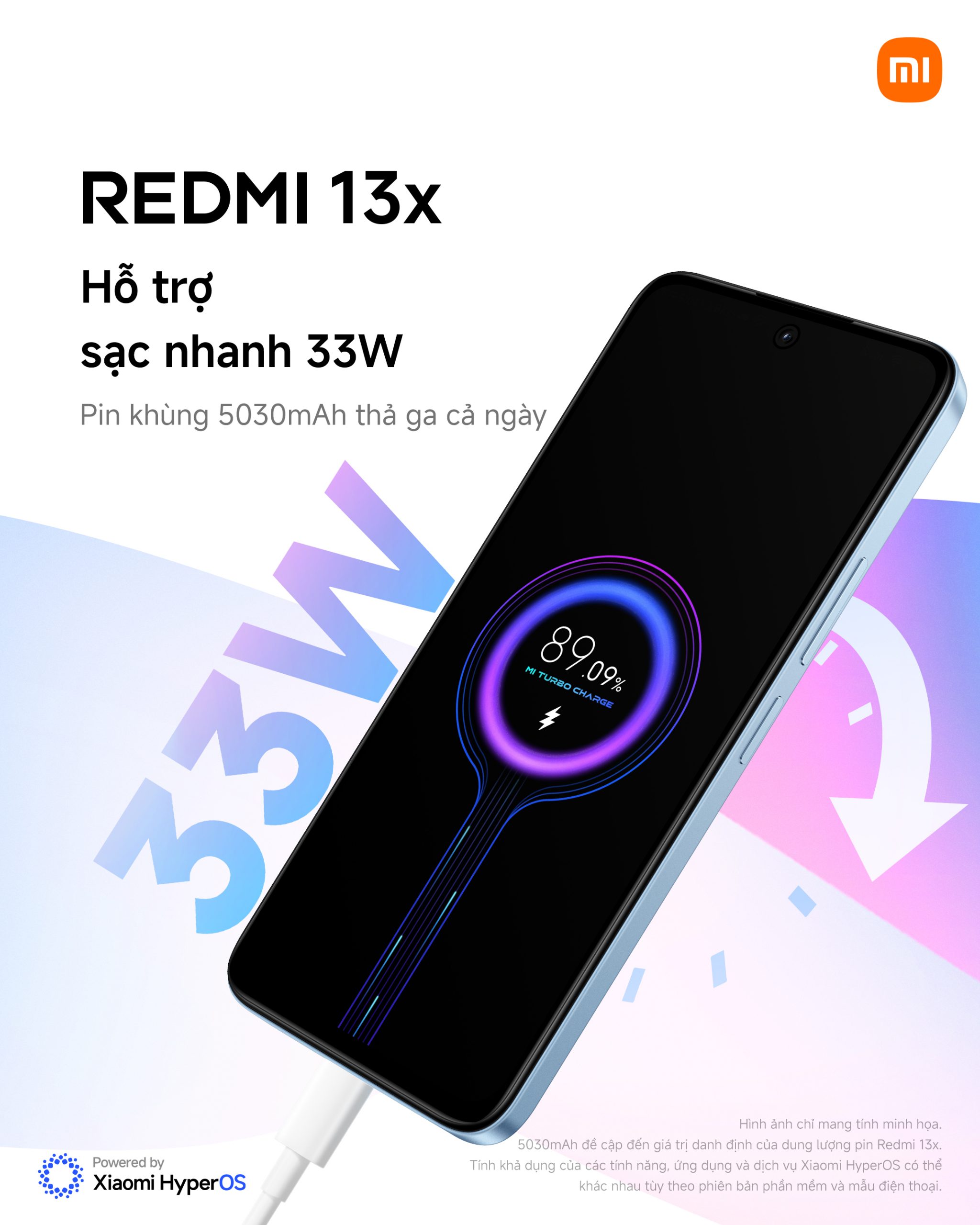 Redmi 13x còn được trang bị hệ điều hành mới nhất Xiaomi HyperOS, với giao diện trực quan, thân thiện và nhiều tùy chọn cá nhân hóa. Thiết bị được tích hợp cảm biến vân tay cạnh bên, hỗ trợ mở khóa khuôn mặt AI, giữ lại giắc tai nghe 3,5 mm, đèn LED thông báo và radio FM, mang đến sự tiện lợi tối ưu cho người dùng.