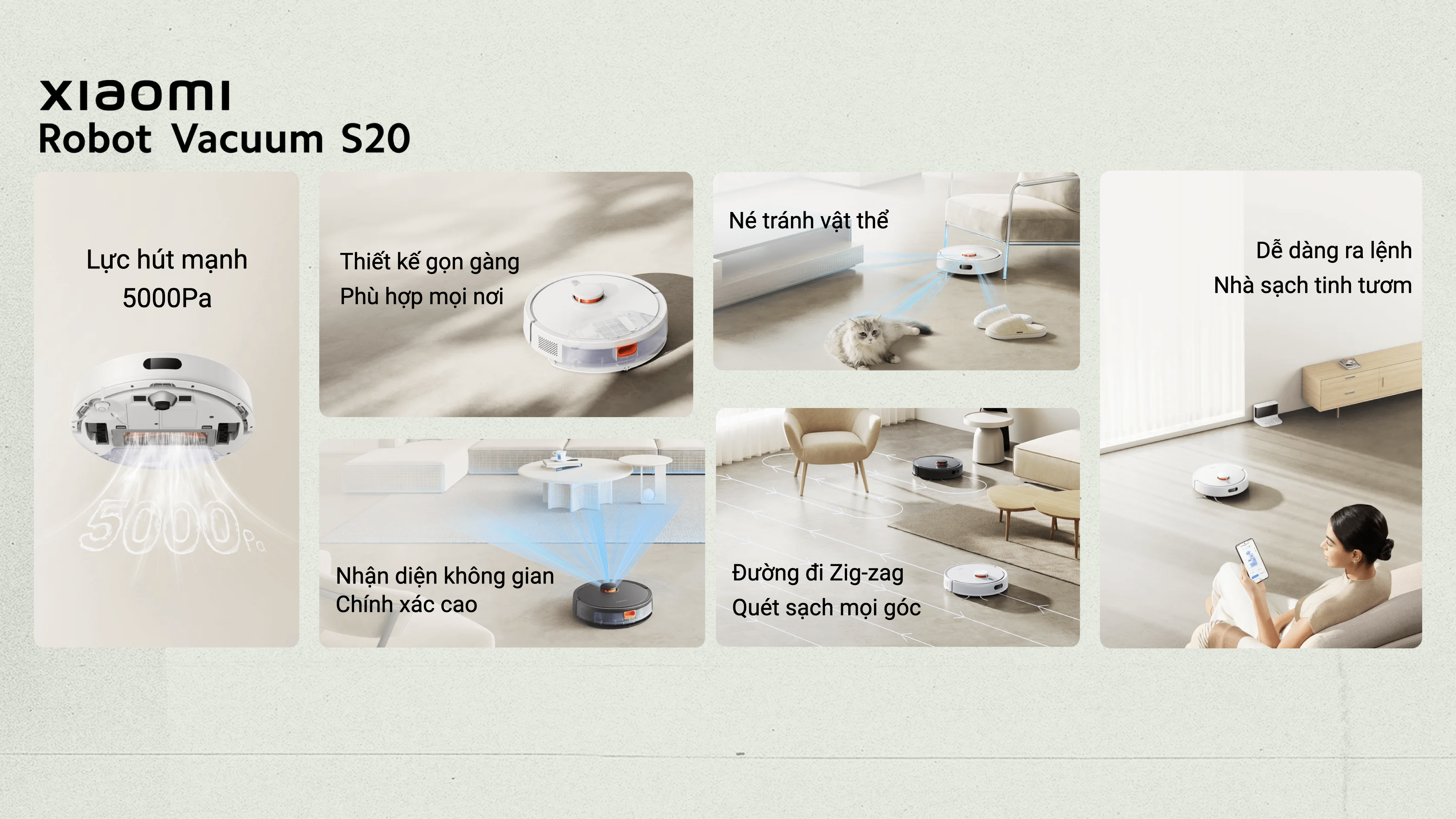 • Xiaomi Robot Vacuum S20 có giá bán chính thức 5.490.000 đồng, giảm ngay 500.000 đồng, còn 4,990,000 đồng, mở bán vào tháng 08/2024.