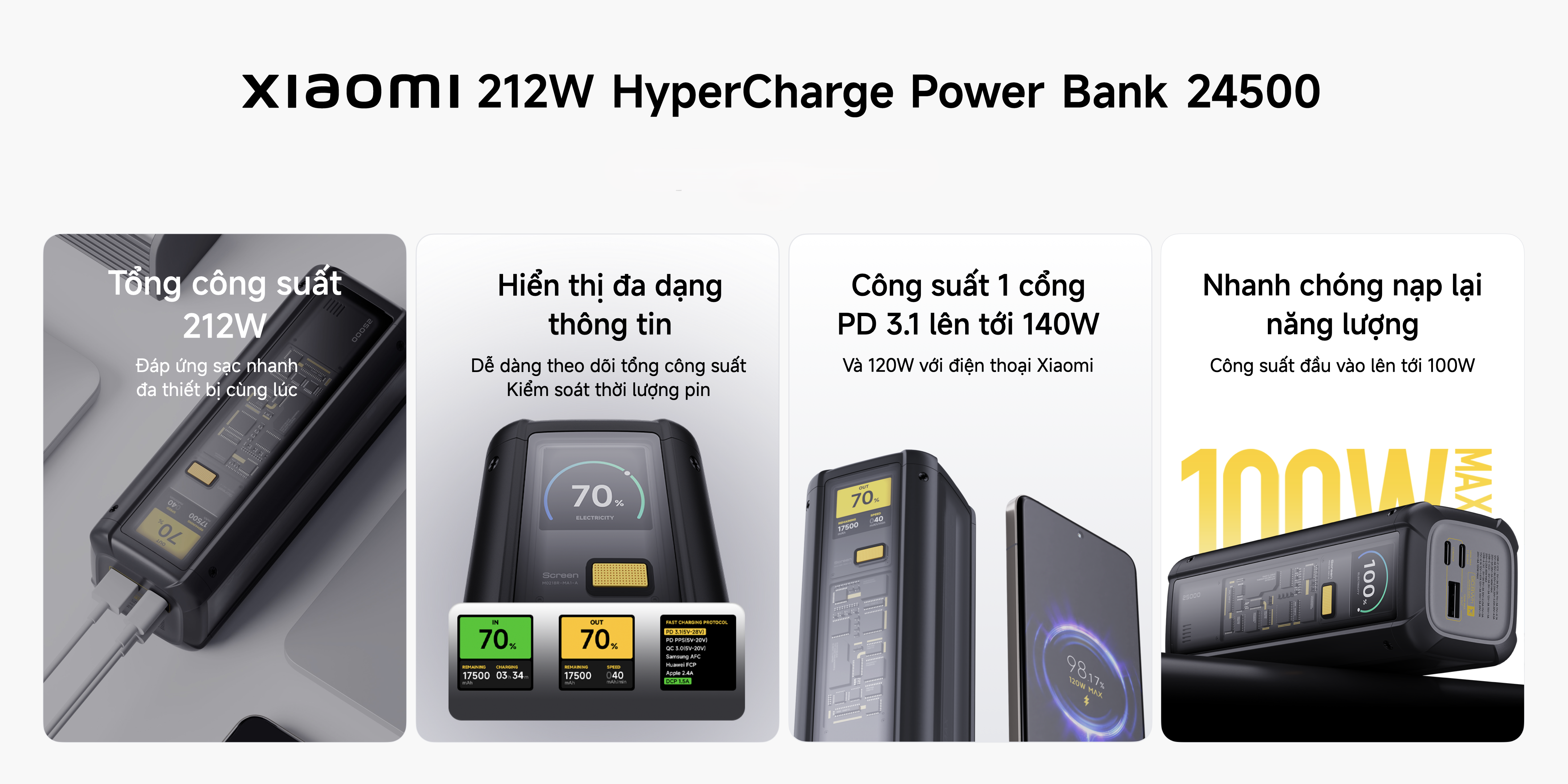 - Xiaomi 212W HyperCharge Power Bank 24.500 mAh có giá 2.990.000 đồng, giảm ngay 300.000 đồng, từ ngày 03/03 – 03/04/2025.